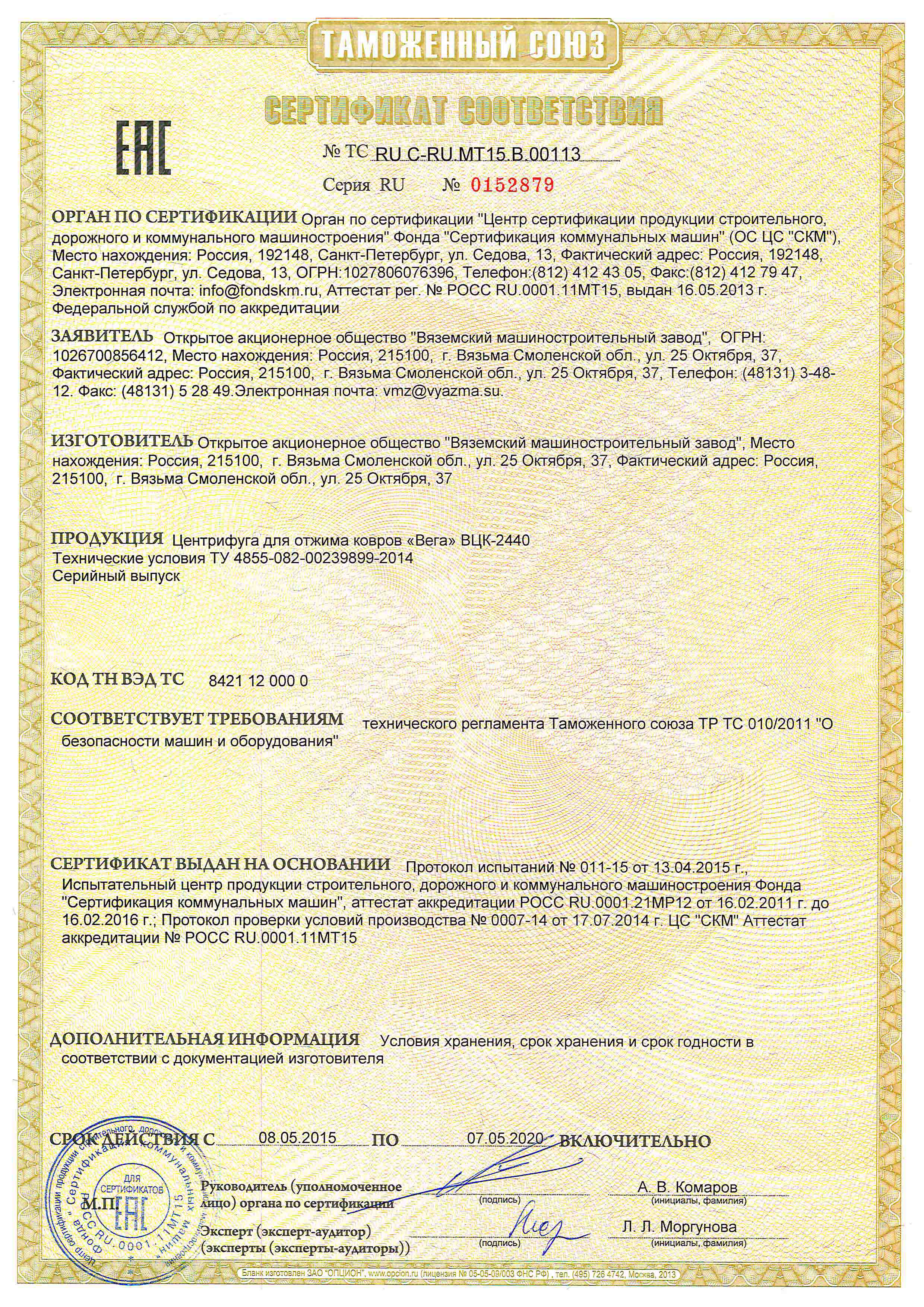 Центрифуга для отжима ковров Вязьма ВЦК-2440 - Предназначена для отжима тканевых ковров, скрученных в рулон (спираль), с длиной рулона не более 2,4 метра.