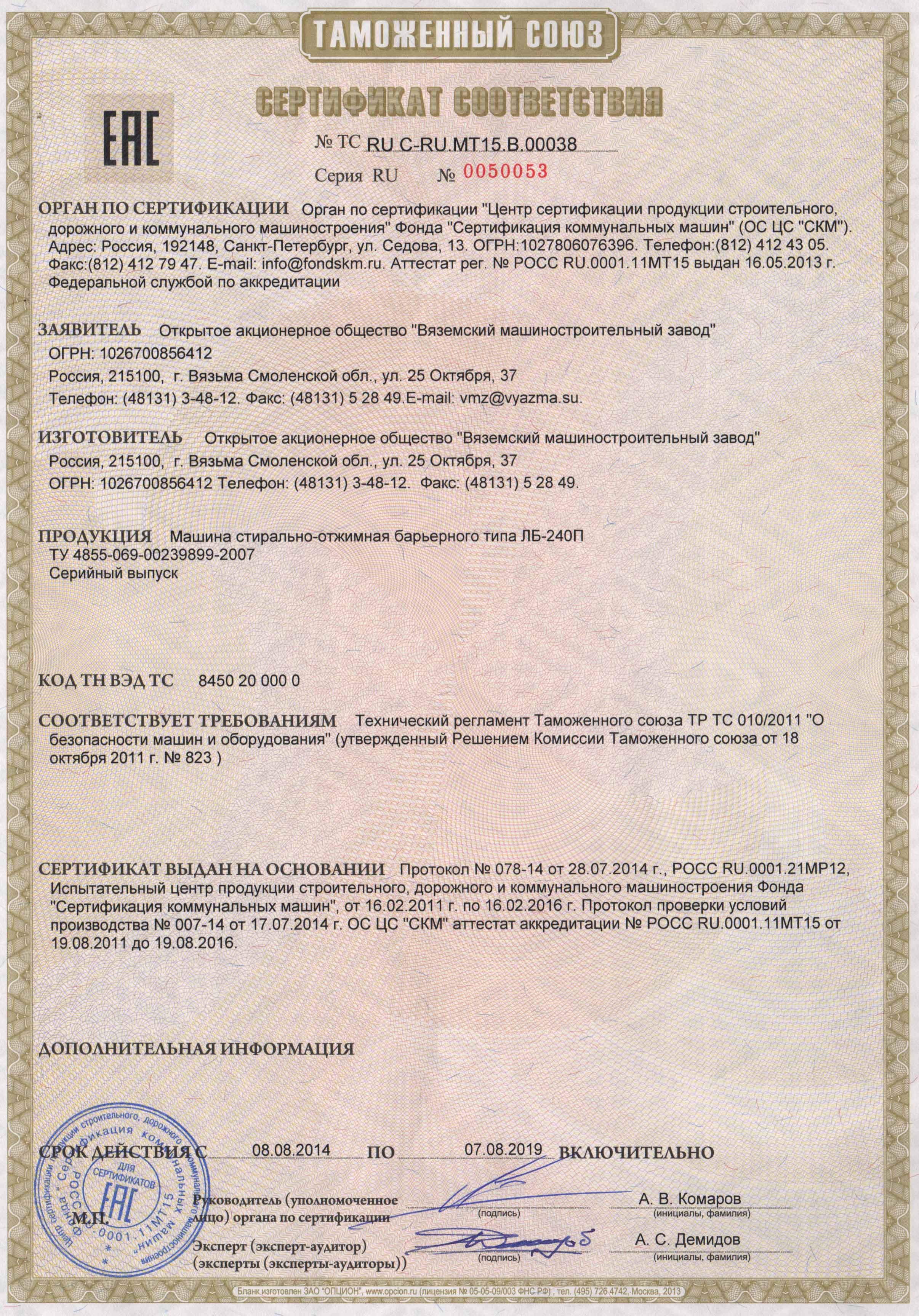 - Номинальная загрузочная масса не более 240 кг
