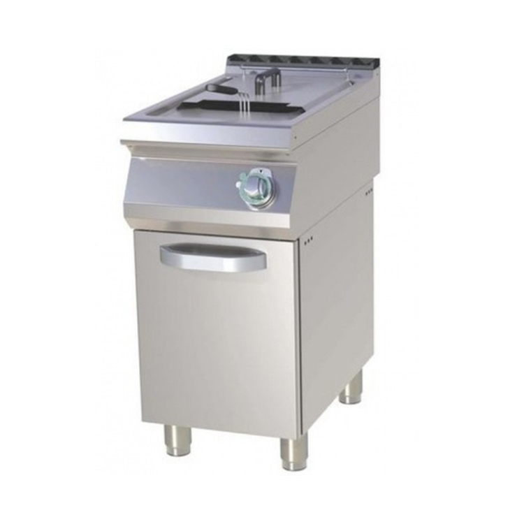 Фритюрница Azimut FE 740/13 E напольная, на закрытом стенде с 1 дверцей имеет электромеханическую панель управления, сливной кран, холодную зону, ТЭНы из нержавеющей стали.