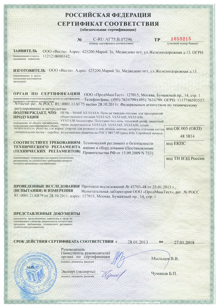 - Вес печи – мангала – 262 кг.