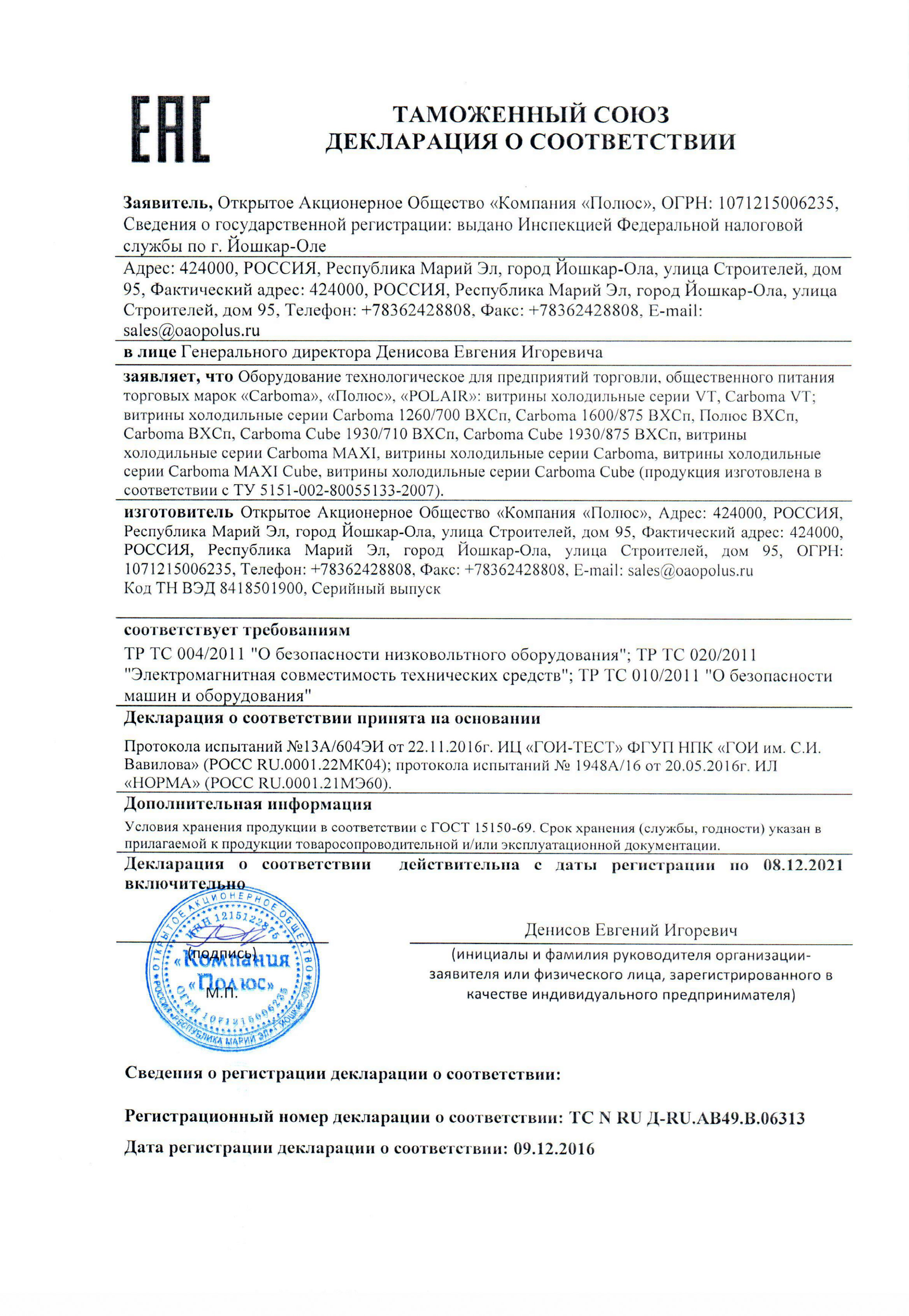 - Витрины предназначены для эксплуатации в закрытом помещении с естественной вентиляцией при - температуре окружающего воздуха от +12˚С до +25˚С и относительной влажности не более 60%