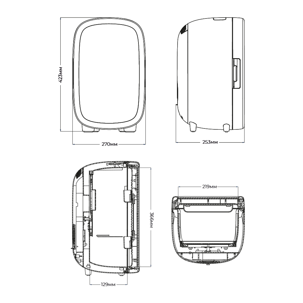 - Внутренние размеры (ВхШхГ), мм: 366х219х129