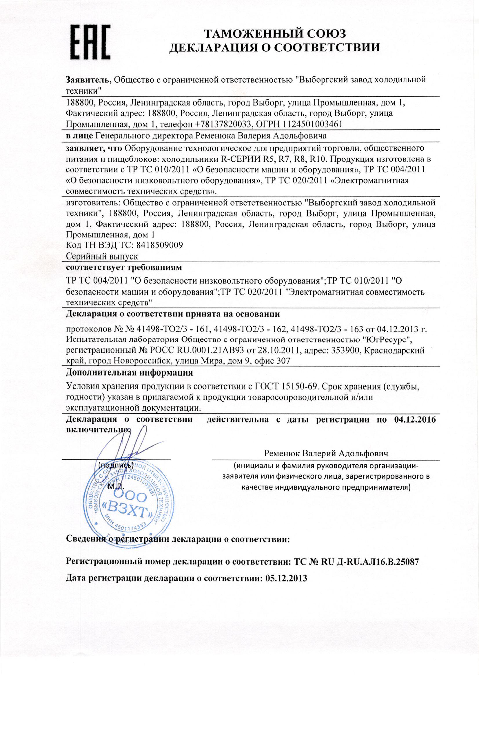 - компрессор (Danfoss, Cubigel или Tecumseh).