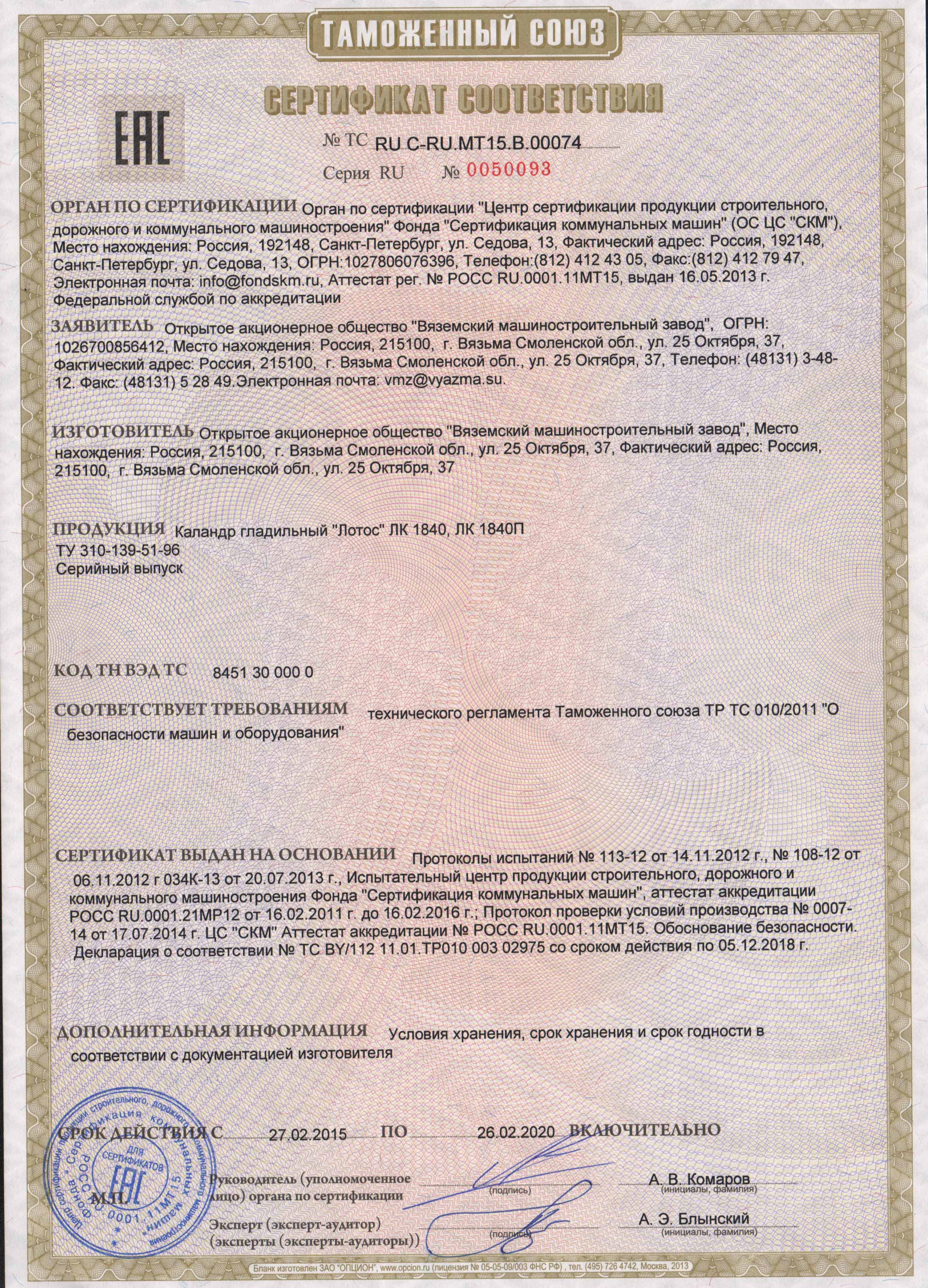 Каталог прачечного оборудования для химчистки или отеля от компании Kobor.ru представляет Вам Каландр гладильный Вязьма ЛК-1840П. Ниже полное описание модели и характеристики.