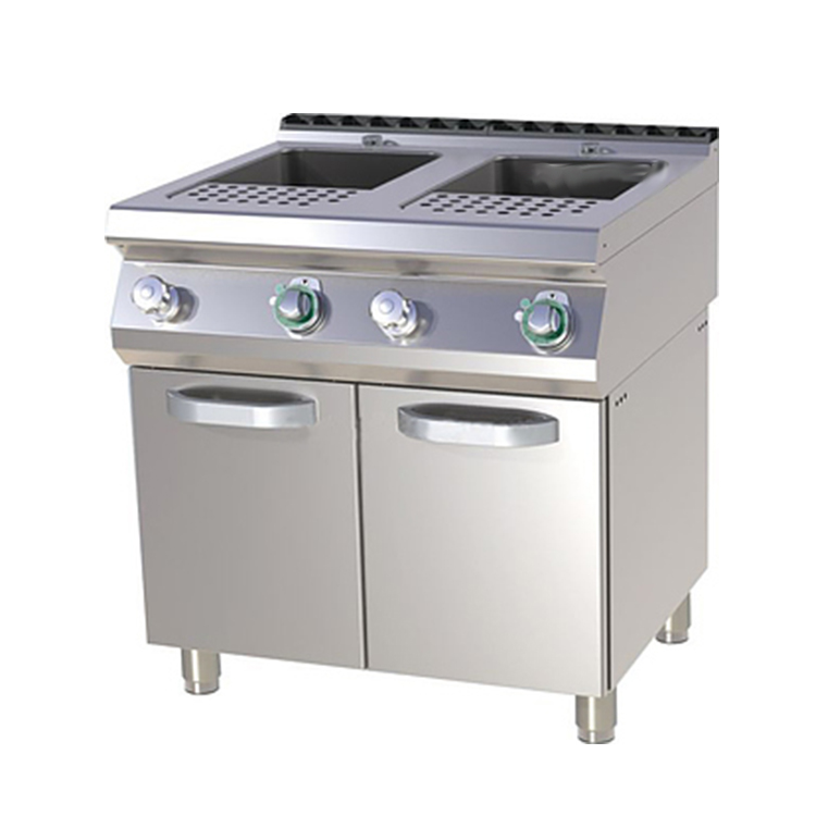 Макароноварка Azimut VT 780 E используется на предприятиях общественного питания и торговли для отваривания всех видов макаронных изделий и других продуктов из теста. Модель оснащена закрытым стендом с 2 дверцами, плавной регулировкой температуры, сливом воды, краном заливки воды и регулируемыми ножками. Ванны выполнены из нержавеющей стали AISI 304, ТЭНы - из специального сплава Incoloy 825, устойчивого к воздействию солей и пищевых кислот.