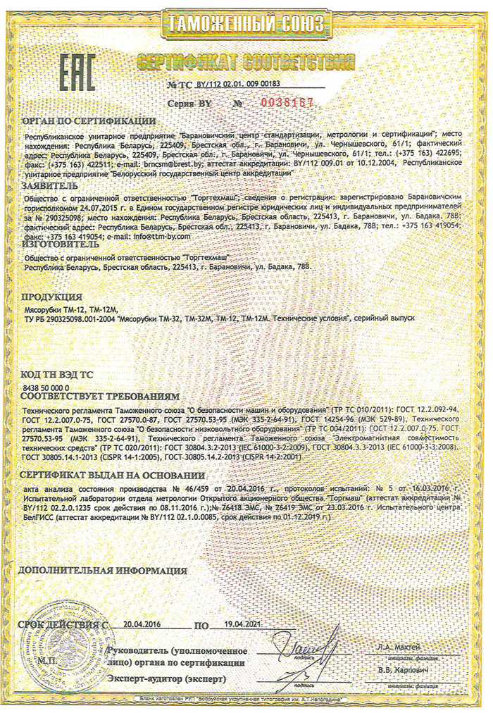 Мясорубка Торгтехмаш ТМ-12М используется на предприятиях общественного питания и торговли для измельчения мяса и рыбы при производстве фарша. Модель оснащена функцией Реверс, исключающей необходимость разборки мясорубки при попадании костей в горловину и наматывании жил на шнек. Все детали, контактирущие в процессе работы с продуктами, выполнены из безопасной нержавеющей стали.