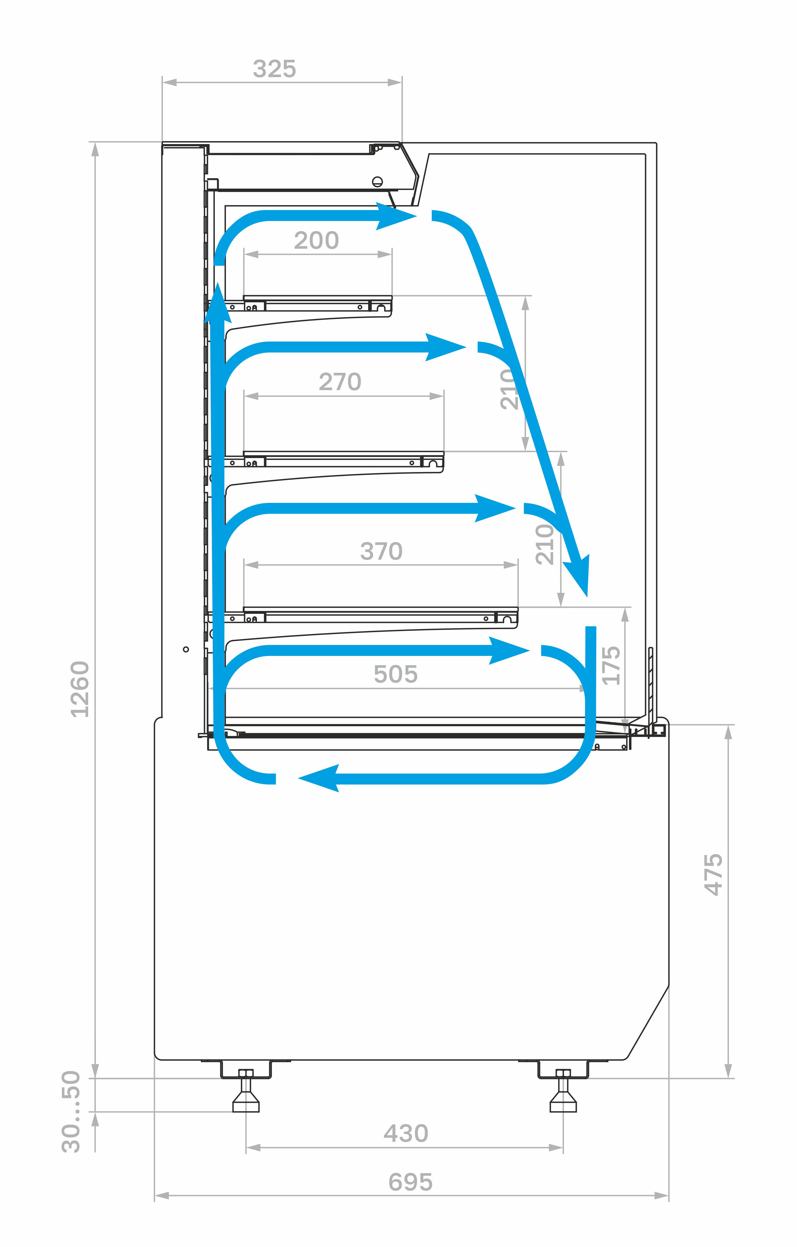 - Витрина должна быть установлена не ближе 2 м от отопительных приборов. Запрещается эксплуатация витрины при попадании на нее прямых солнечных лучей, воздушных потоков от кондиционеров, вентиляторов и обогревателей.