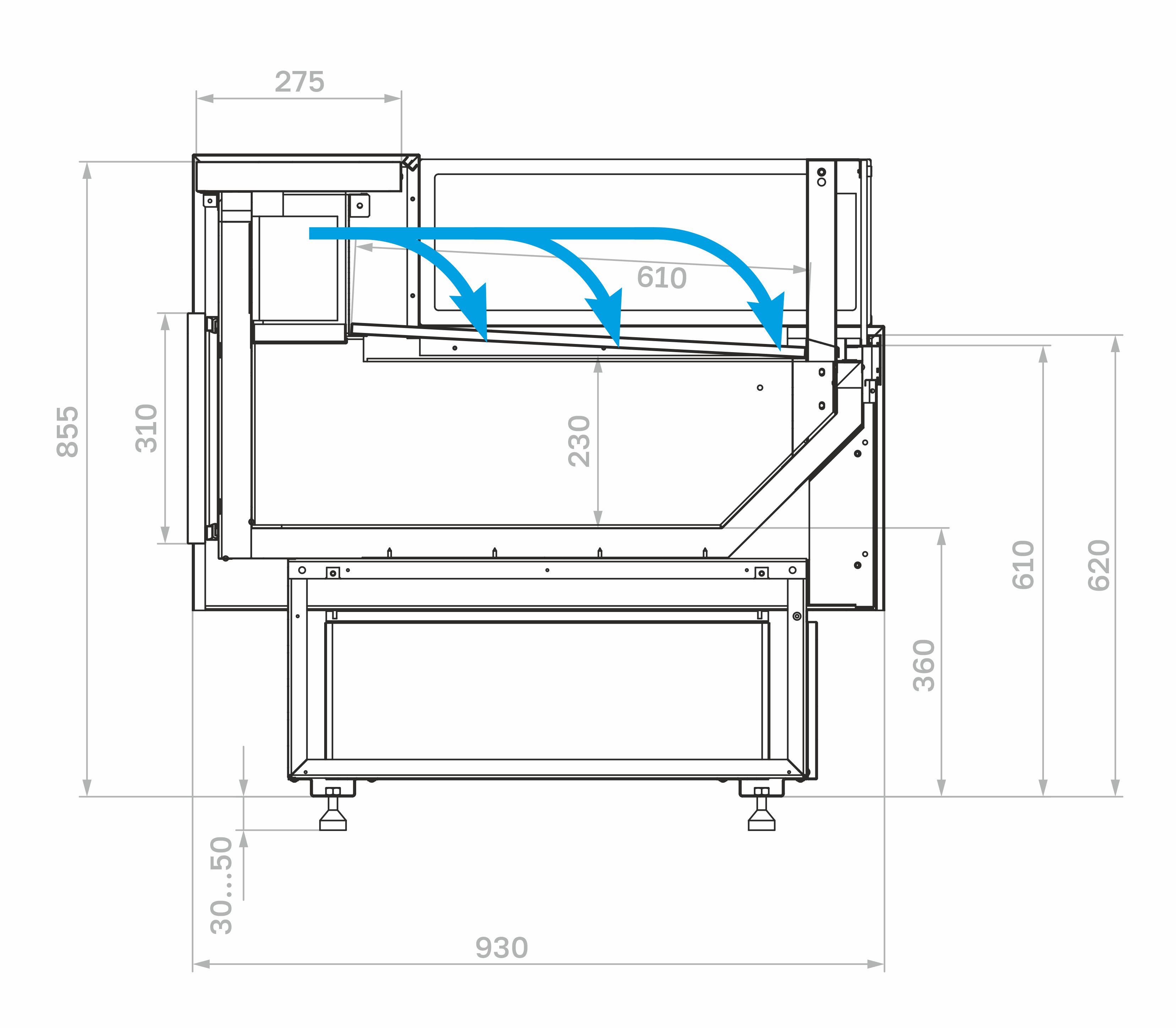 - Универсальный размер по глубине (930 мм) идеально подходит для размещения в магазинах любого формата