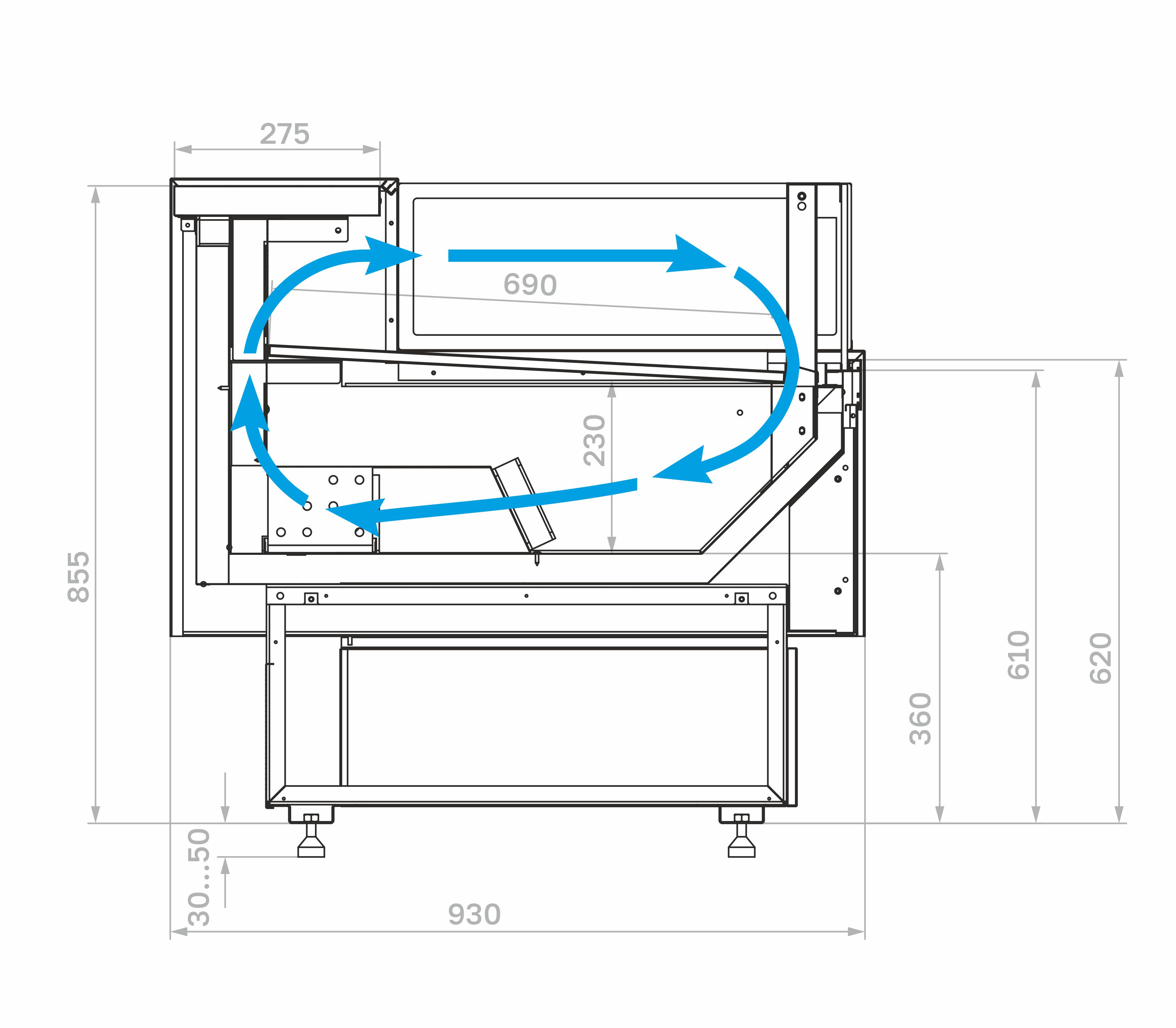 - Универсальный размер по глубине (930 мм) идеально подходит для размещения в магазинах любого формата