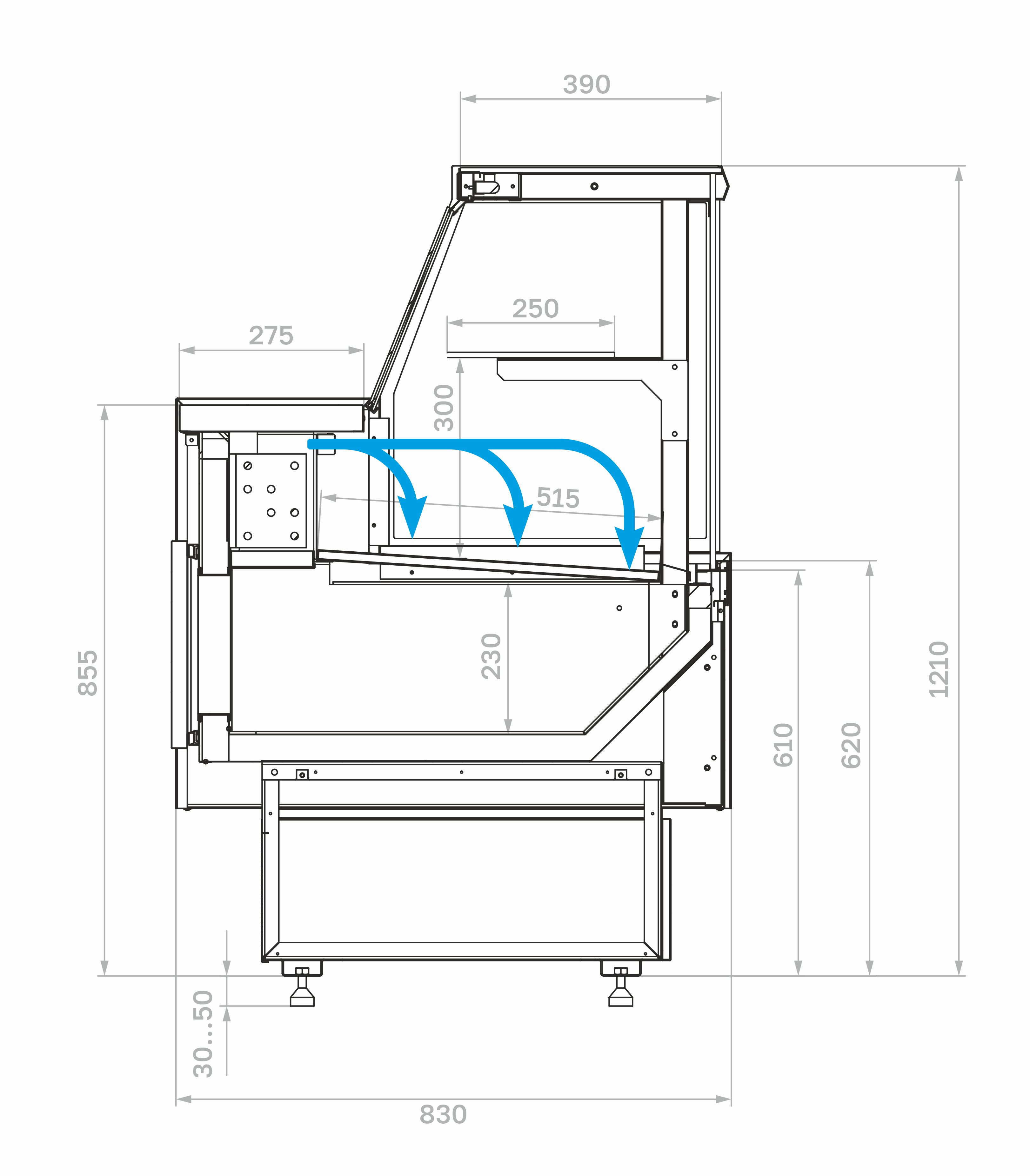 Холодильная витрина Carboma PRAIA 2 GC85 SV, температурный режим которой настраивается в пределах от -5 до +5 °С, предназначена для продажи мясных и молочных продуктов, а также птицы, морепродуктов и рыбы. Витрина имеет небольшие габариты, что позволяет использовать её даже в небольших продуктовых точках продаж. Витрины Carboma PRAIA 2 предназначены для эксплуатации в закрытом помещении с естественной вентиляцией при температуре окружающей среды от +12 до +25 и относительной влажности не более 60%