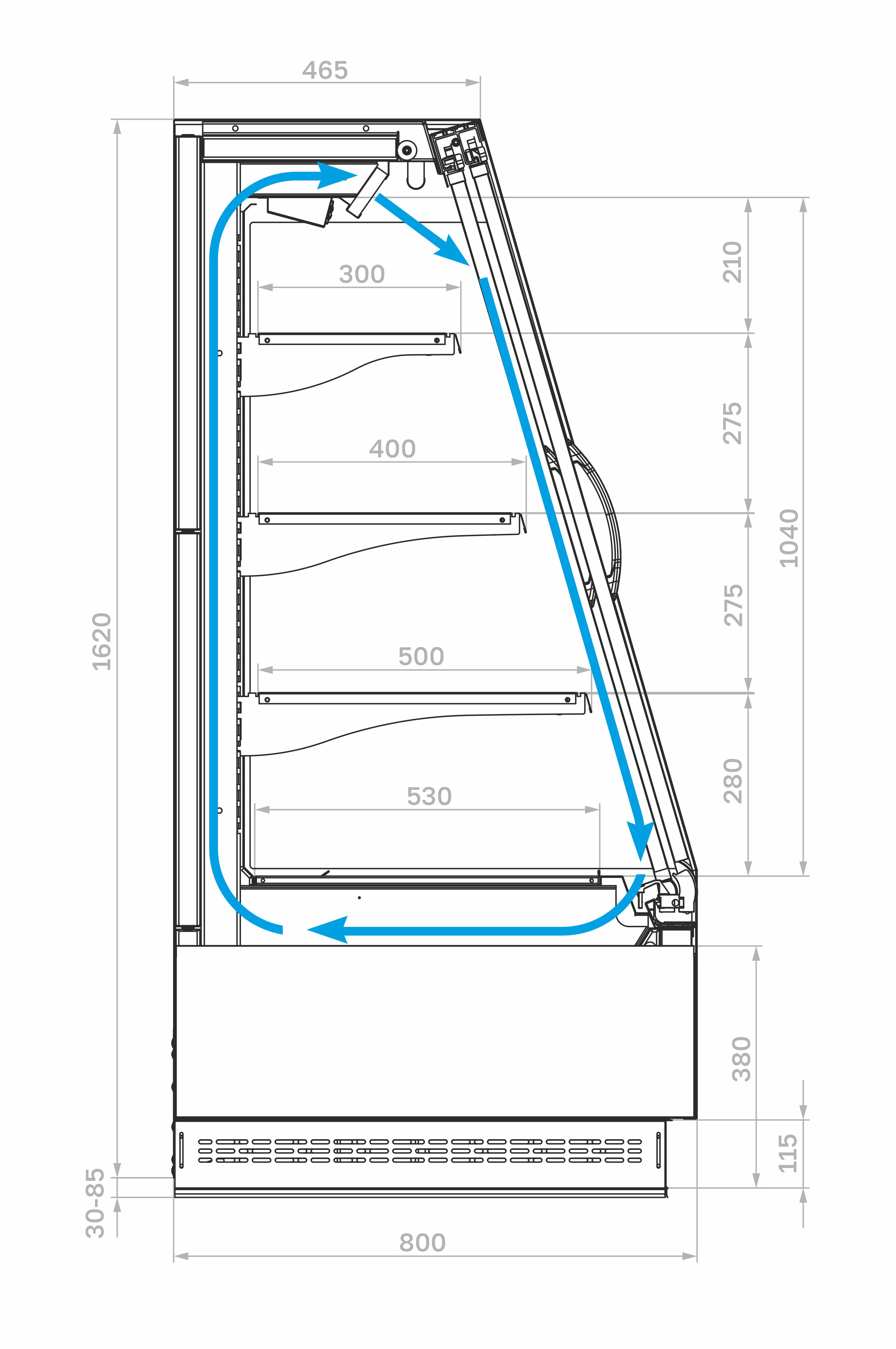 - Витрина должна быть установлена не ближе 2 м от отопительных приборов. Запрещается эксплуатация витрины при попадании на нее прямых солнечных лучей, воздушных потоков от кондиционеров, вентиляторов и обогревателей. Просвет между задней стенкой витрины и стеной помещения должен быть не менее 0,25 м.